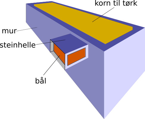 Figur 1: Forenklet fremstilling av såinn, ovnen som brukes for tørking av malt i såinnhuset